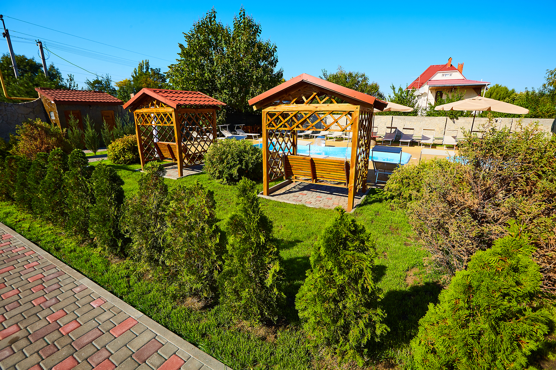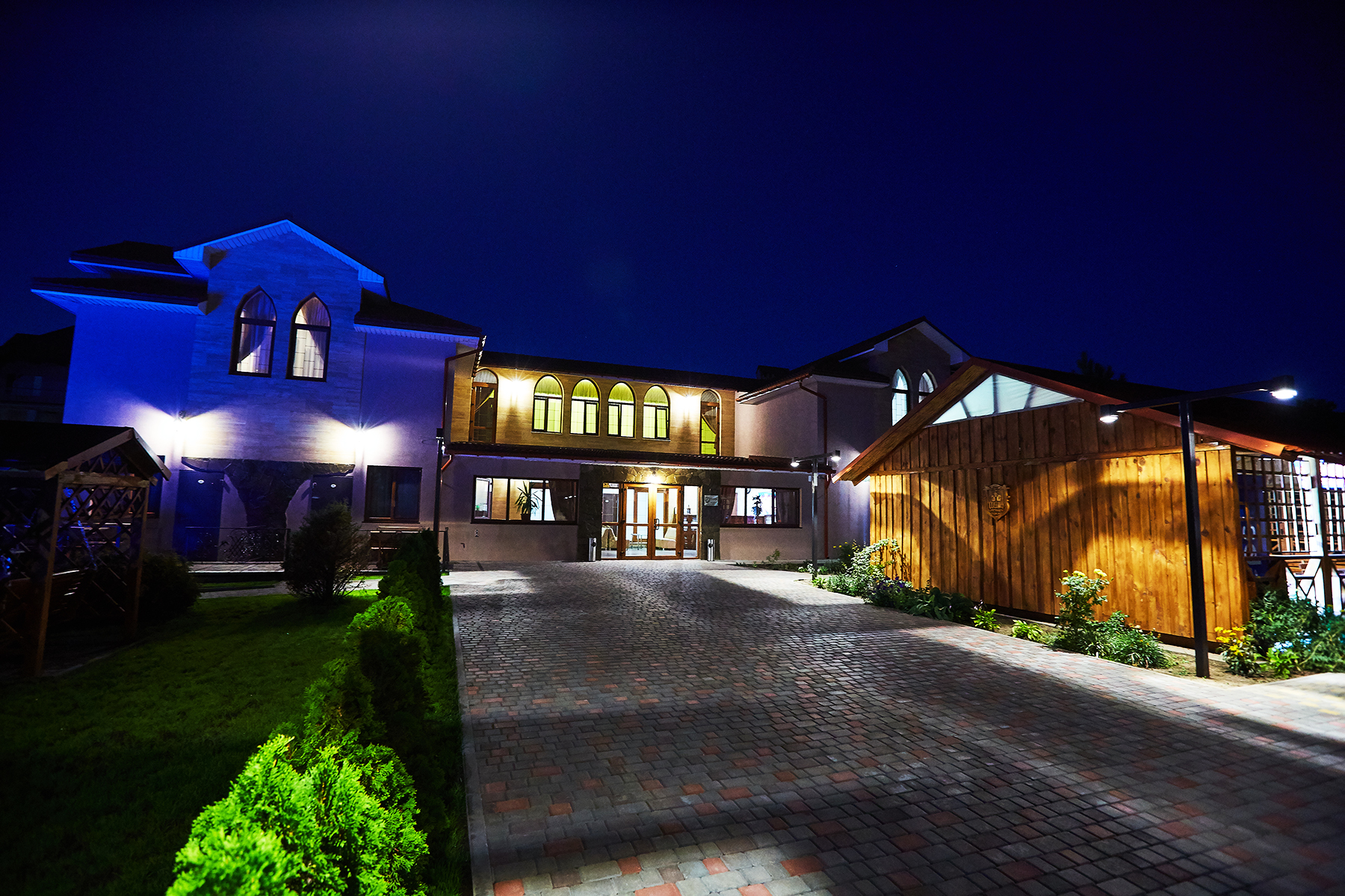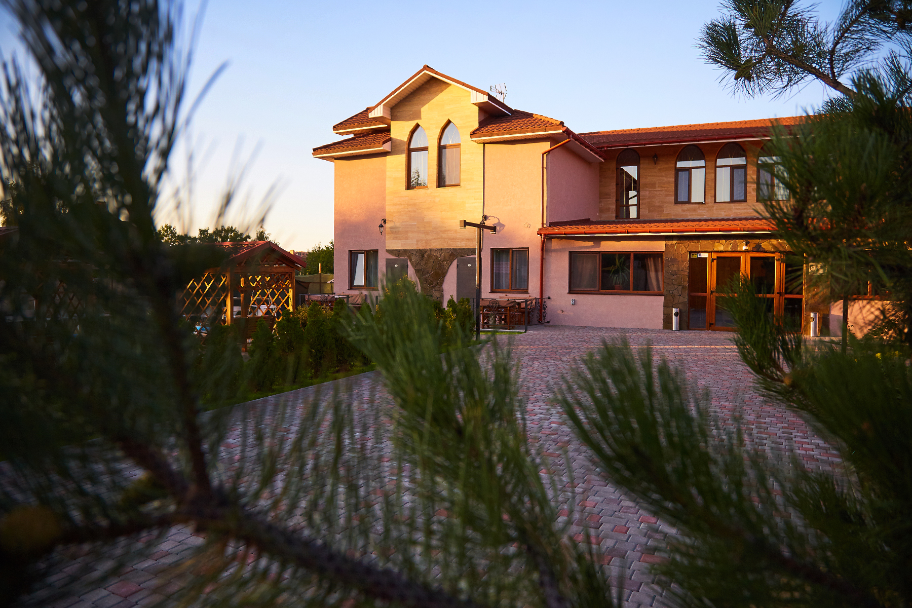 Гостинний двір "Шато" - це справжній райський куточок, оточений з усіх боків сосновими деревами, пишною зеленню і затишними альтанками, в яких ви зможете відпочити і провести час з друзями на свіжому повітрі. А закрита територія дасть змогу провести захід будь-якого рівня і всі почуватимуться і своїх гостей у безпеці.