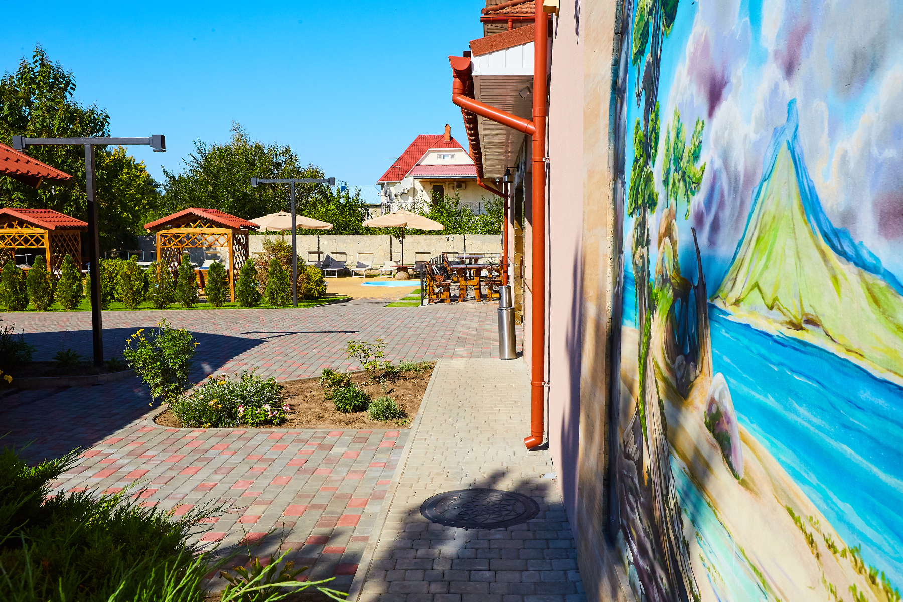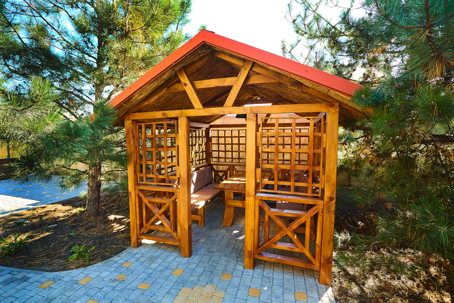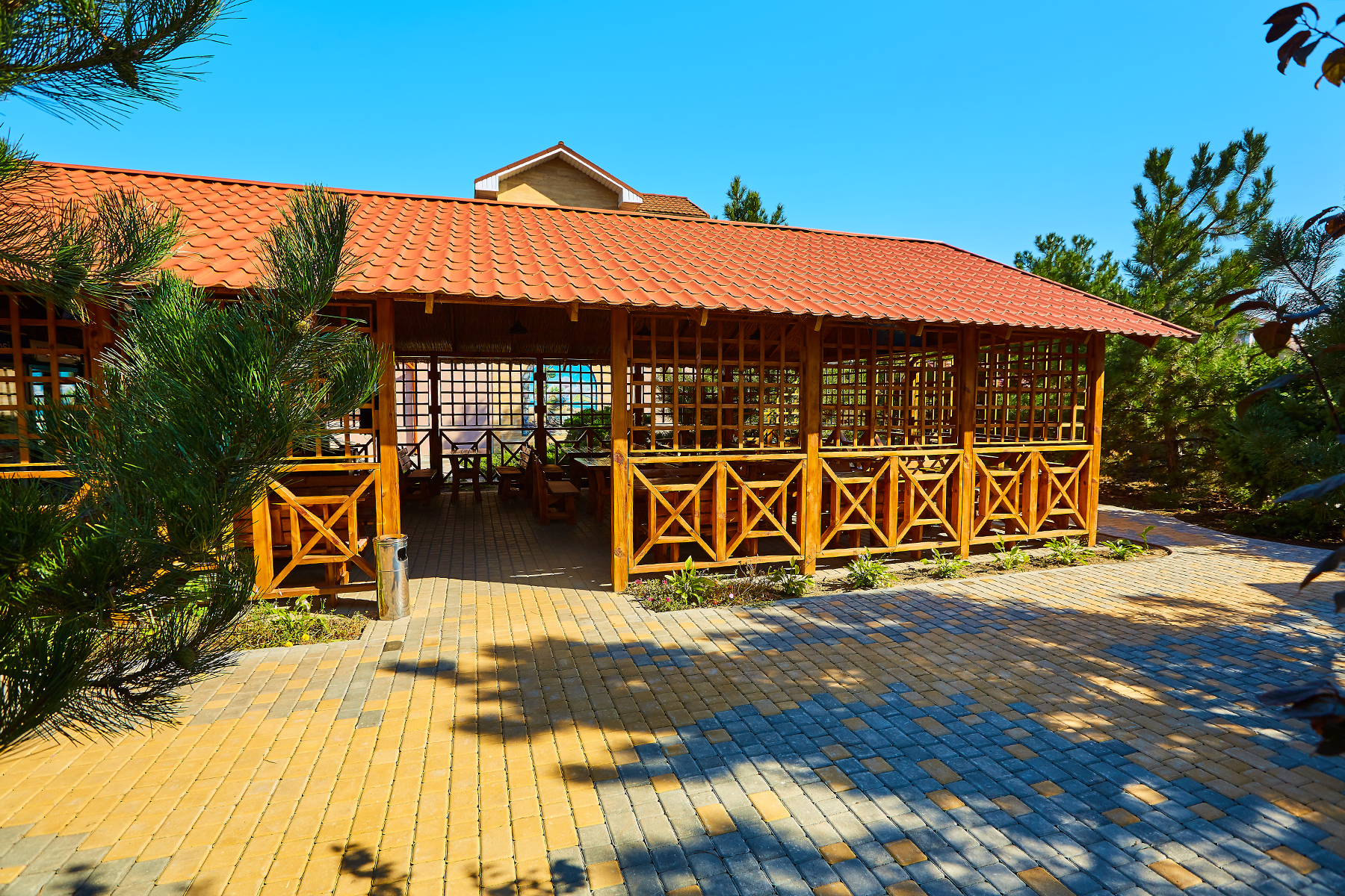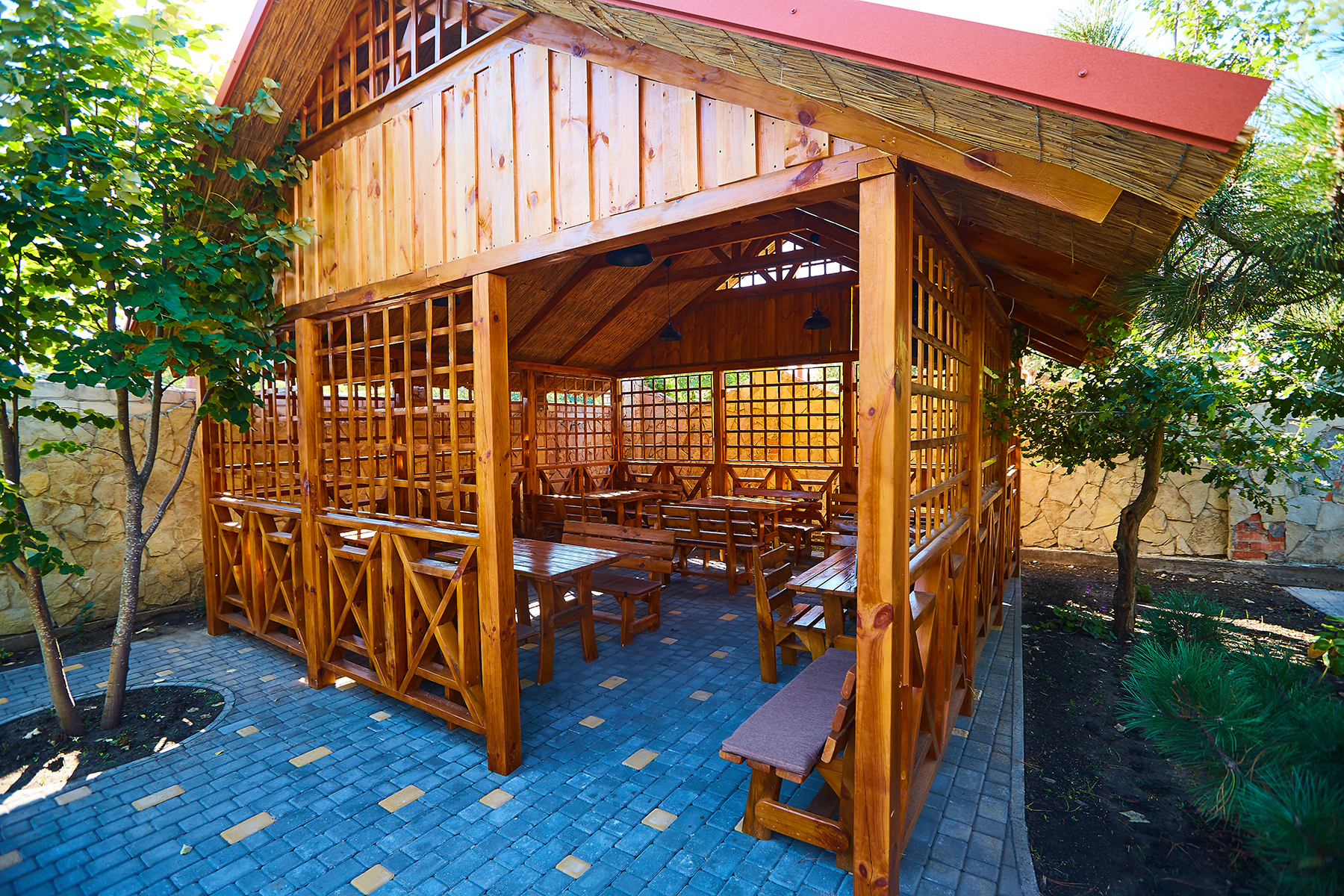 Гостинний двір "Шато" - це справжній райський куточок, оточений з усіх боків сосновими деревами, пишною зеленню і затишними альтанками, в яких ви зможете відпочити і провести час з друзями на свіжому повітрі. А закрита територія дасть змогу провести захід будь-якого рівня і всі почуватимуться і своїх гостей у безпеці.